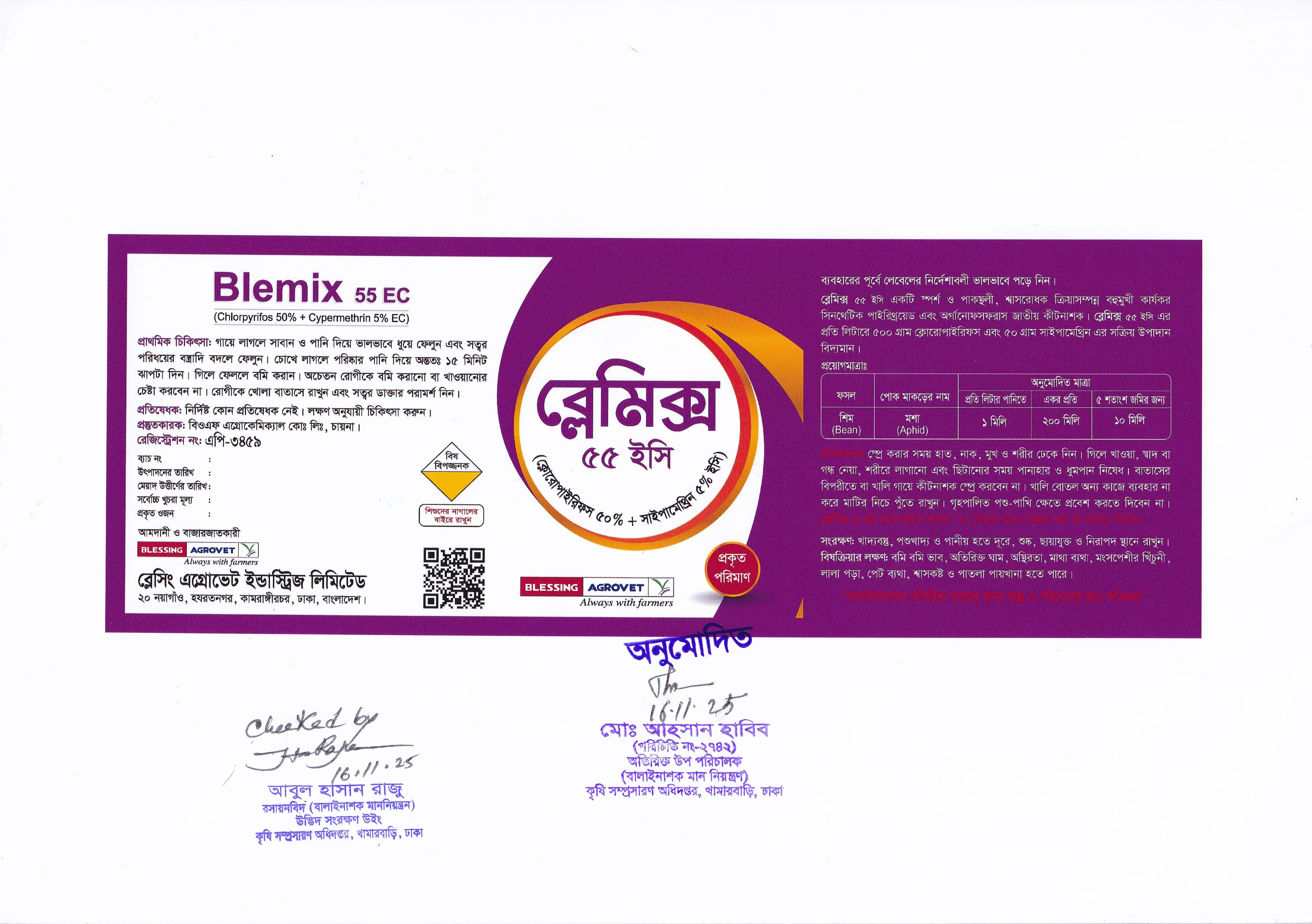 একটি স্পর্শক, পাকস্থলী ও শ্বাসরোধক ক্রিয়াসম্পন্ন বহুমুখী কার্যকর সিনথেটিক পাইরিথ্রয়েড এবং অর্গানোফসফরাস জাতীয় কীটনাশক।