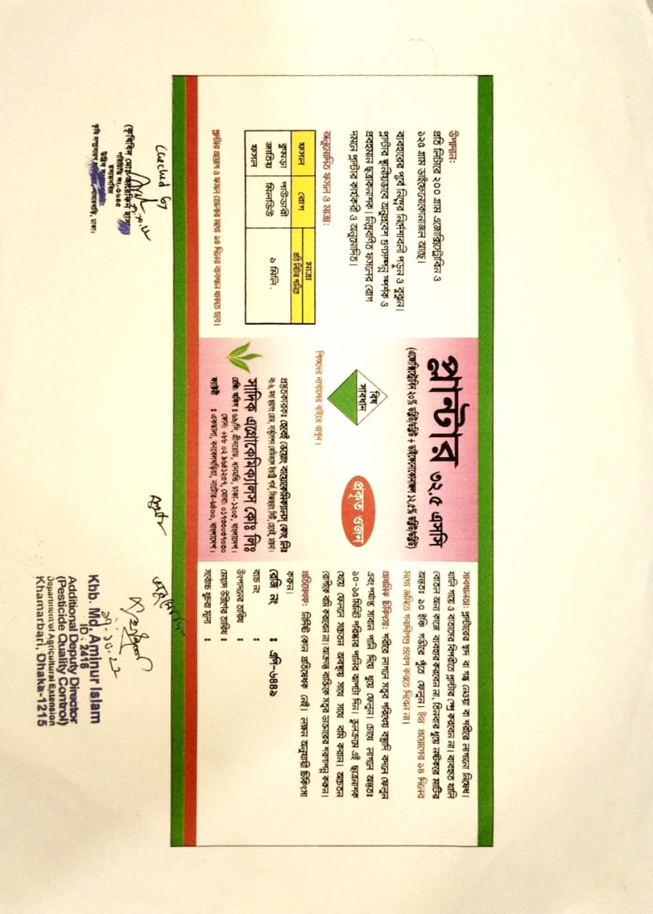প্রতি ১০ লিটার পানিতে ১০ মিলি মিশিয়ে ভাল্ভাবে স্প্রে করতে হবে ।