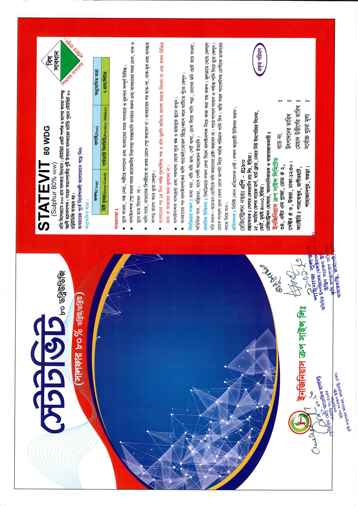 স্পর্শক ও ভ্যাপর ক্ষমতা সম্পন্ন এবং সেকেন্ডারি কার্য সম্পন্ন অগ্রণী মাকড় ও ছত্রাকনাশক। কিউকারবিট্স ও চায়ের লাল মাকড় দমনে কার্যকর এবং জমিতে সালফারের ঘাটতি পূরণে অধিক কার্যকর।