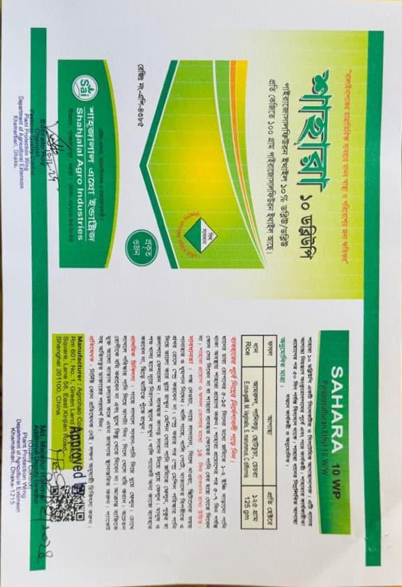 শাহারা ১০ ডাব্লিউ পি একটি সিলেক্টিভ ও সিস্টেমিক আগাছানাশক। এটি ধানের আগাছা নিয়ন্ত্রণে অঙ্কুরোদগমের পূর্বে ও পরে কার্যকরী।