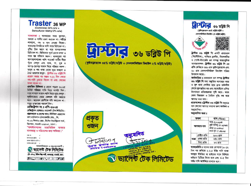 ট্রস্টার ৩৬ ডব্লিউ পি একটি প্রবাহমান (সিস্টমিক), পানিতে দ্রবণীয়, সিলেকটিভ ও পোস্ট-ইমার্জেন্স গুন সম্পন্ন অত্যাধুনিক আগাছানাশক। ট্রস্টার ৩৬ ডব্লিউ পি এর প্রতি কেজিতে ৩৪০ গ্রাম কুইনক্লোর্যাক এবং ২০ গ্রাম বেনসালফিউরন মিথাইল সক্রিয় উপাদান আছ। যা ধানের শ্যামা (E. crusgali), ছোট পানিকচু (M. vaginalis), দূর্বা (C. dactylox), চেচড়া (S. maritimus), হলদেমূথা (C. difformis) দূর করতে সক্ষম।