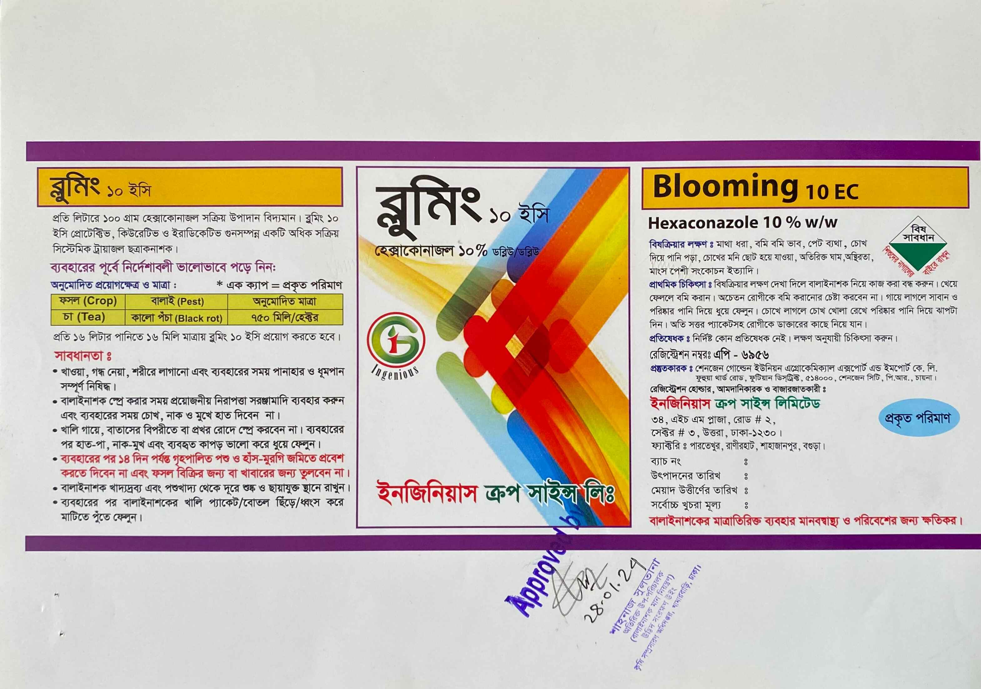 প্রতিষেধক ও প্রতিরোধক ক্ষমতা সম্পন্ন প্রবাহমান ছত্রাকনাশক যা ধানের খোল পোড়া, কুমড়ার ডাউনি মিলডিউ ও এনথ্রাকনোজ, চায়ের কালো পঁচা, আম , তুলা ও পানের এনথ্রাকনোজ নিয়ন্ত্রণে কাজ করে।