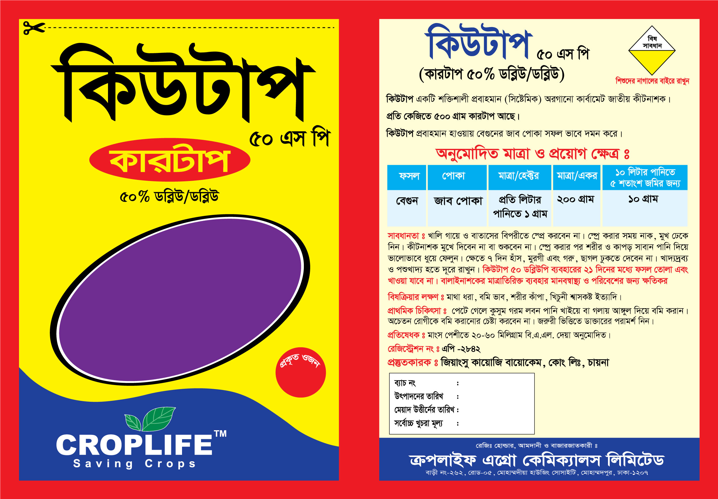 কিউটাপ ৫০ এস পি একটি শক্তিশালী প্রবাহমান অরগানো কার্বামেট জাতীয় কীটনাশক। প্রতি কেজিতে ৫০০ গ্রাম কারটাপ আছে। সর্বাপেক্ষা স্বল্প মাত্রায় ধান, বেগুন, ঢেঁড়স, সীম, টমেটো, পটল, কাকরল, বরবটি, কপি ও তরমুজসহ সব ধরনের ফসলের বিভিন্ন পোকা দমনে অত্যন্ত কার্যকর। বিভিন্ন কীটনাশক যখন পোকা দমনে কার্যকারীতা হারিয়ে ফেলে সেই সমস্ত পোকা সফলভাবে দমন করার জন্য কিউটাপ ৫০ এসপি সবচেয়ে বেশি উপযোগী কীটনাশক। কিউটাপ ৫০ এসপি প্রবাহমান হওয়ায় গাছের ভিতরের এবং বাহিরের পোকা সফল ও সম্পূর্ণভাবে নির্মূল করে। ইতিমধ্যেই ধান ও বেগুনের মাজরা পোকা দমনের অতীব কার্যকরী প্রমাণিত হওয়ায় কৃষি বিজ্ঞানীরা দানাদার কীটনাশকের পরিবর্তে কিউটাপ ৫০ এসপি ব্যবহারের উপর গুরুত্ব দিয়েছেন।
