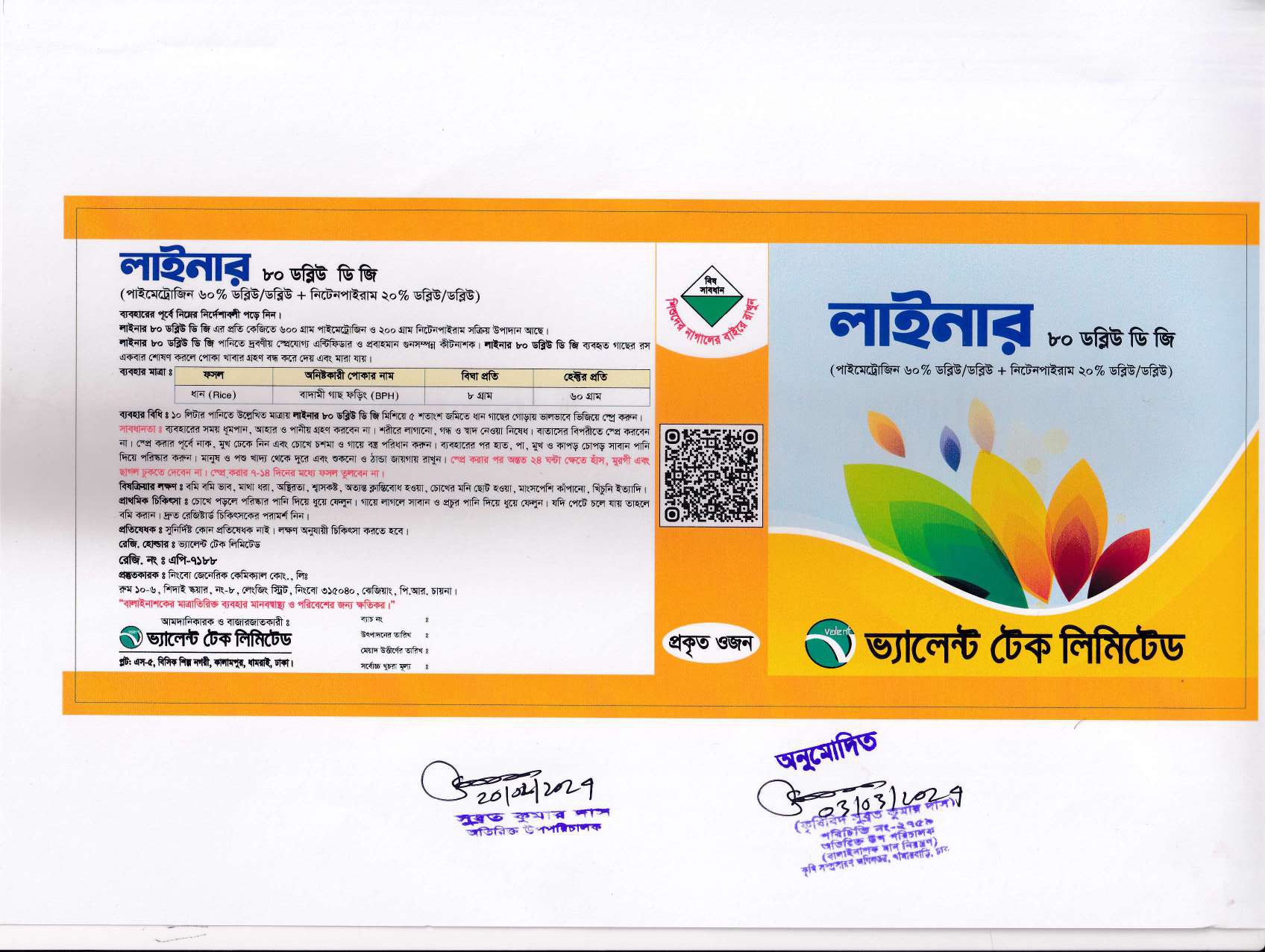 লাইনার ৮০ ডব্লিউ ডি জি পানিতে দ্রবণীয় স্পেযোগ্য এন্টিফিডার ও প্রবাহমান গুনসম্পন্ন কীটনাশক। লাইনার ৮০ ডব্লিউ ডি জি ব্যবহিত গাছের রস একবার শোষণ করলে পোকা খাবার গ্রহণ বন্ধ করে দেয়া এবং মারা যায়।