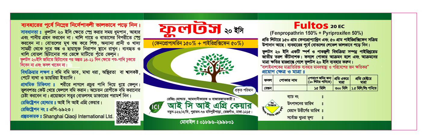 Fultos 20EC can be used in crop field of Brinjal, Tomato, Potato, Tea, Jute etc.