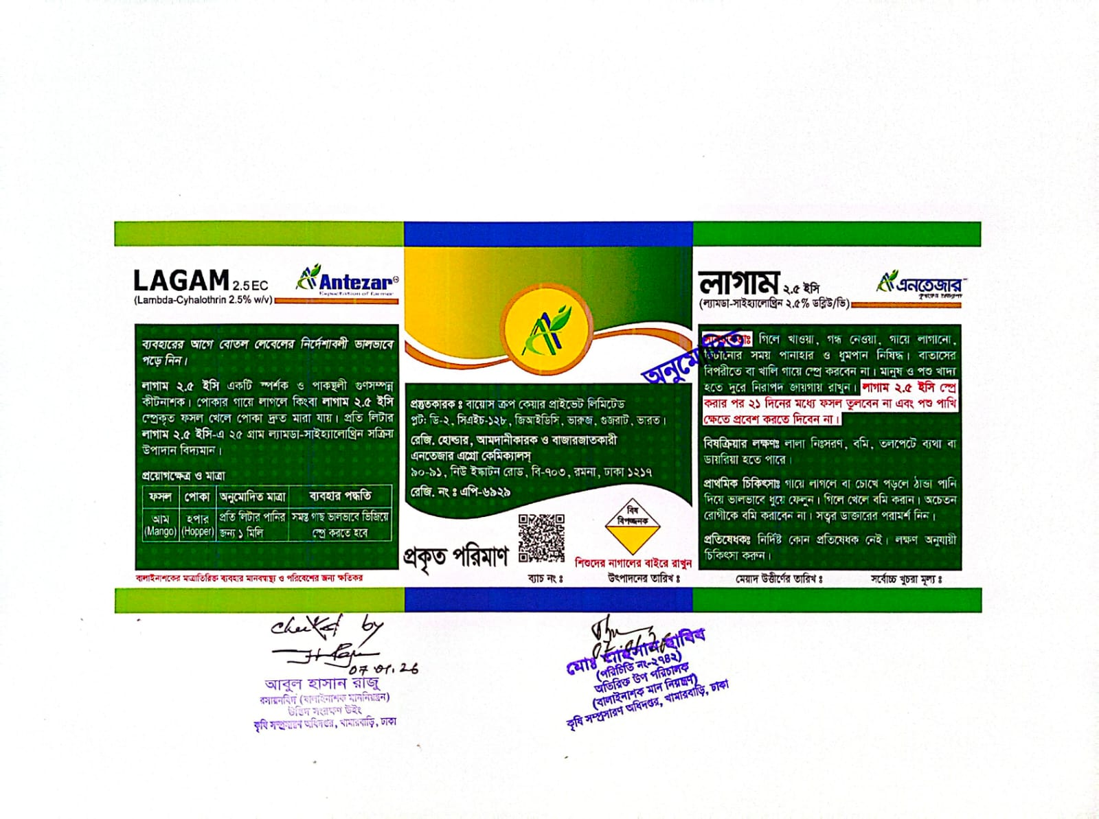 লাগাম ২.৫ ইসি স্প্রে করার ২১ দিনের মধ্যে ফসল তুলবেন না এবং পশুপাখি ক্ষেতে প্রবেশ করতে দিবেন না।