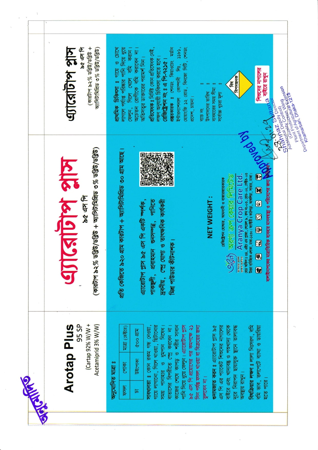 এ্যারোটাপ প্লাস 95 এস পি প্রয়োগের পর কমপেক্ষে 21 দিন পর্যন্ত ফসল খাওয়া বা বিক্রয়ের জন্য তুলবেন না।