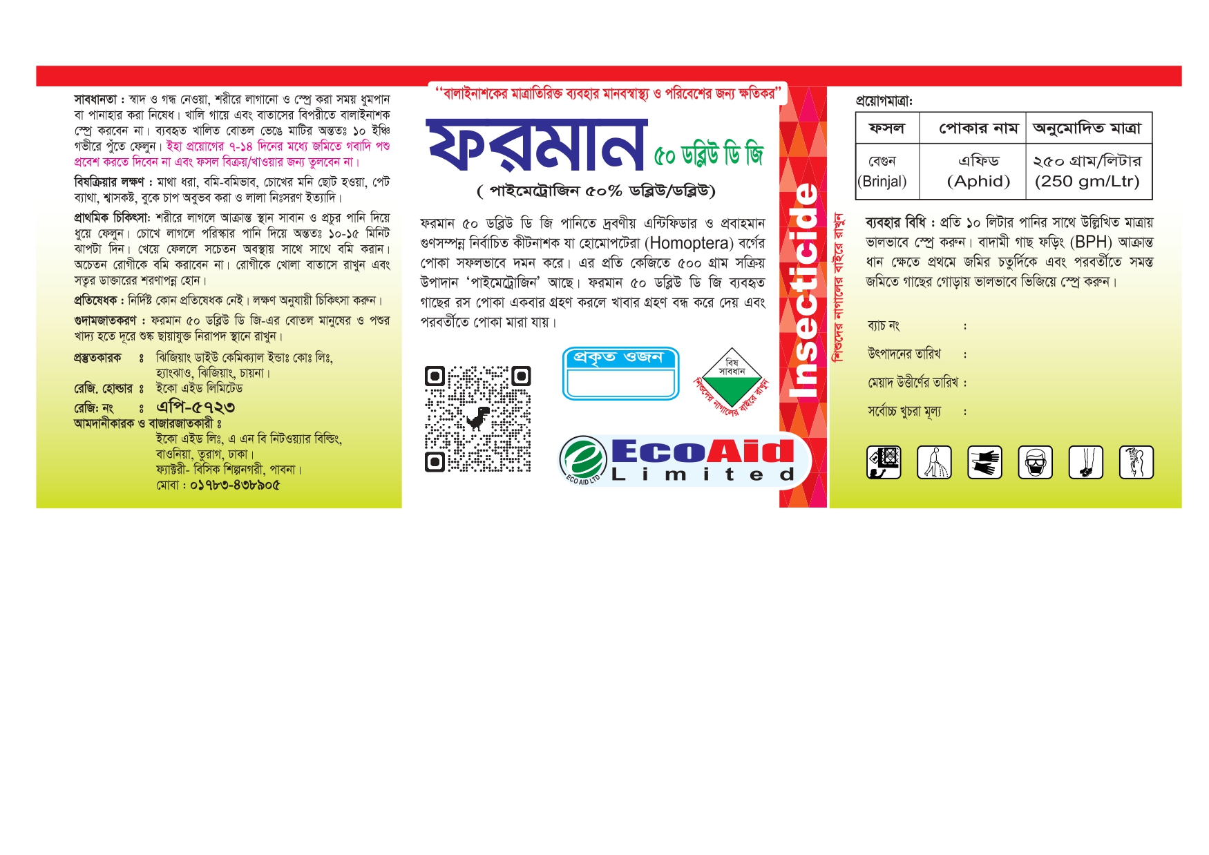 উদ্ভিদ সংরক্ষণ উইং, কৃষি সম্প্রসারণ অধিদপ্তর, খামারবাড়ি, ঢাকা কর্তৃক অনুমোদিত