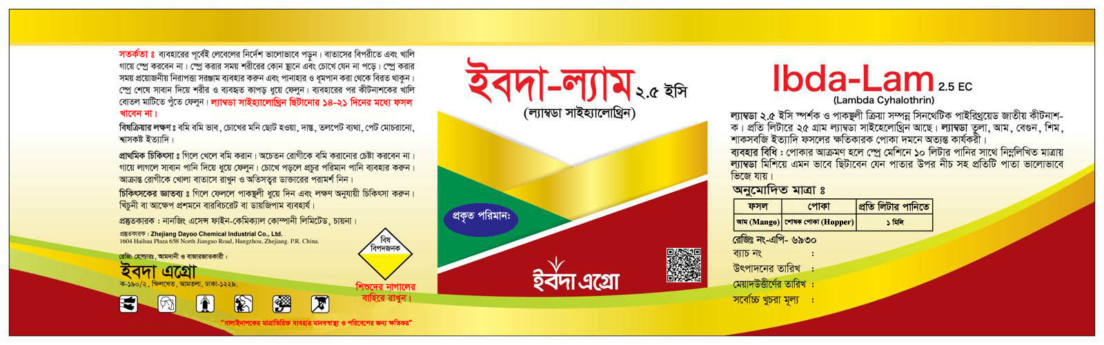 Ibda-Lam 2.5EC (Lamda cyhalothrin 2.5%) is a Pyrethroid insecticide which has strong contact and stomach poisoning effects on pests and has strong knockdown power. Acting on the nervous system of pests. It can effectively prevent the damage of Cabbage Pieris.