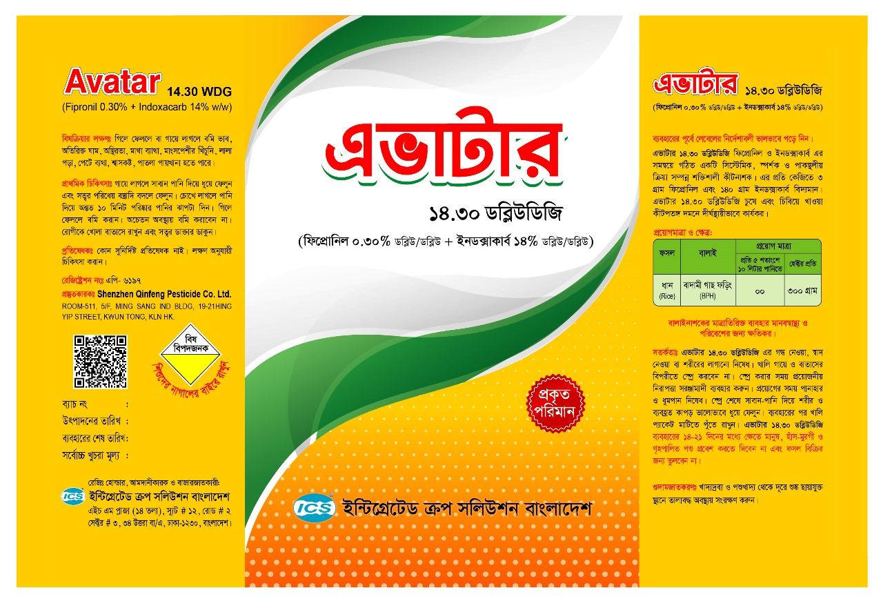 Avater 14.30 WDG ইহা পাকস্থলী ও স্পর্শক গুনের পাশাপাশি স্থানীয়ভাবে অনুপ্রবেশ ক্ষমতা সম্পন্ন পানিতে দ্রবনীয় দানাদার কীটনাশক।