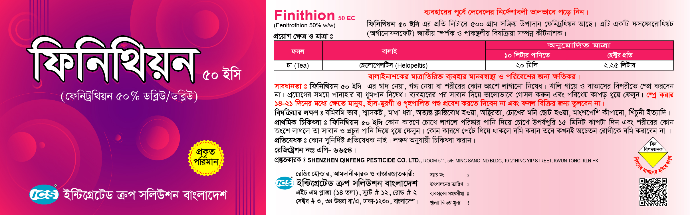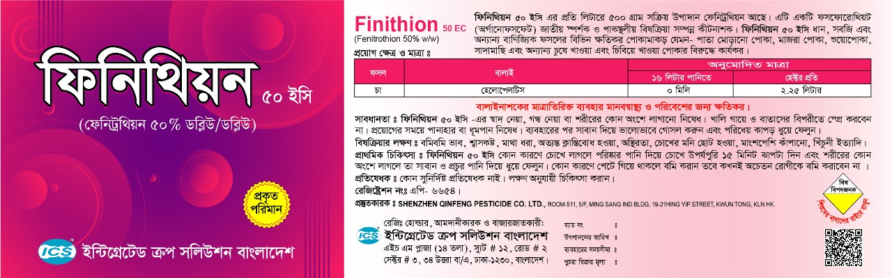 Fenithion 50EC চায়ের হেলোপেলটিস দমনে হেক্টর প্রতি ২.২৫ লিটার পানির সাথে মিশিয়ে স্প্রে করতে হবে।