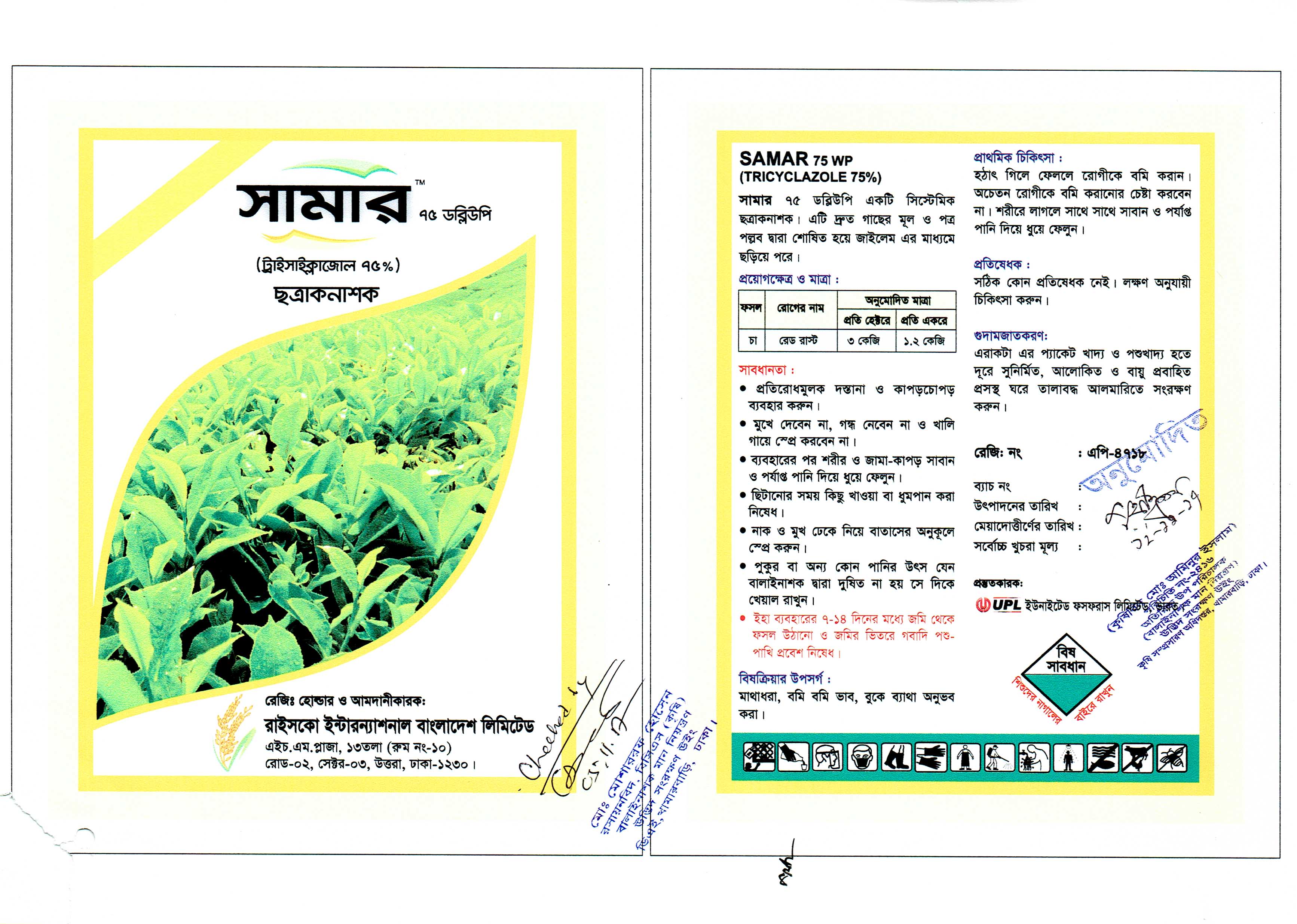 প্রতি হেক্টরে ৩ কেজি অথবা প্রতি একরে ১২০ গ্রাম অনুপাতে ব্যবহার করতে হবে।
