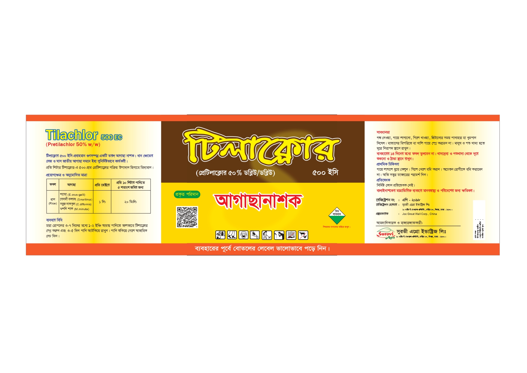 টিলাক্লোর ৫০০ ইসি প্রবাহমান গুণসম্পন্ন একটি তরল আগাছানাশক।