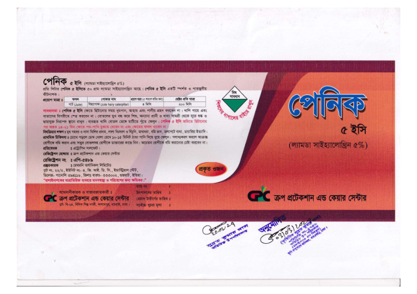 প্রতি লিটার পেনিক ৫ ইসিতে ৫০ গ্রাম ল্যামন্ডা সাইহ্যালোথ্রিন আছে। পেনিক ৫ ইসি একটি স্পর্শক ও পাকস্থলীয় কীটনাশক। যা বিছাপোকা দমনে কার্যকরী।