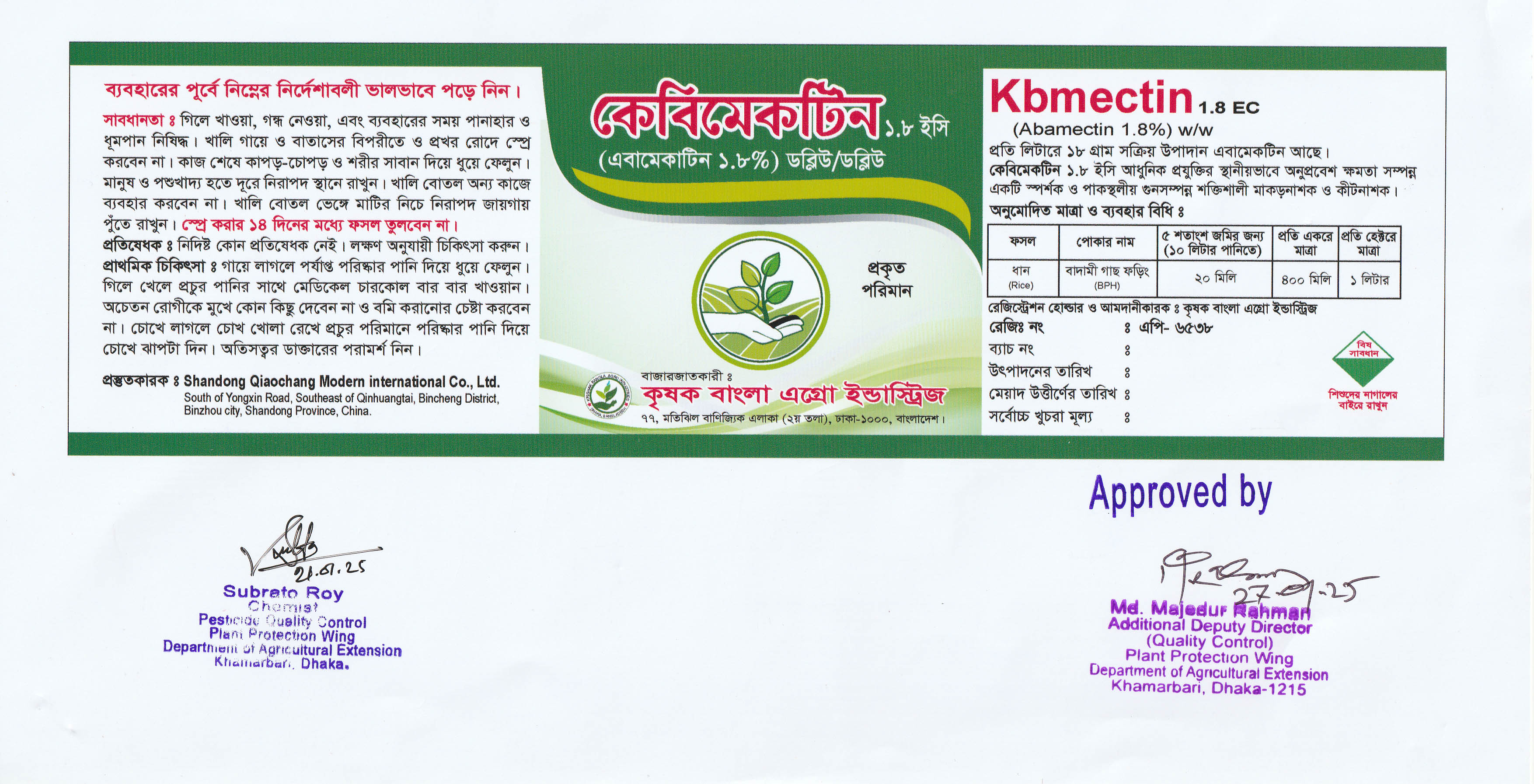 Kbmectin 1.8 EC (Abamectin 1.8% EC) can be used in crop field of rice, tomato, potato and brinjal etc.