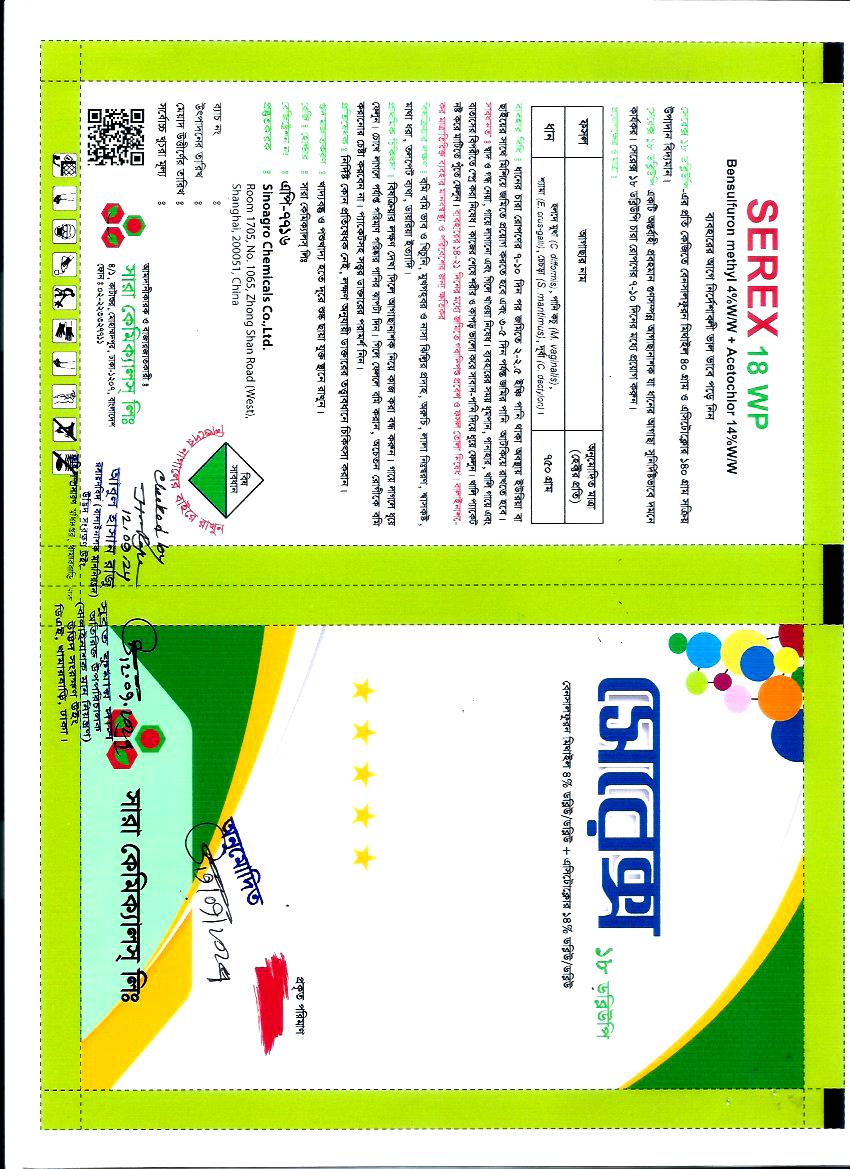 ফসল অনিস্টকারী বালাই অনুমদিত প্রয়োগ মাত্রা ধান (Rice) হলদে মুথা (C. difformis), ৭৫০ গ্রাম/ হেক্টর পানি কচু (M. vaginalis), শ্যামা(E. crus-galli) চেচড়া(S. maritimus), দূর্বা (C. dectylon )