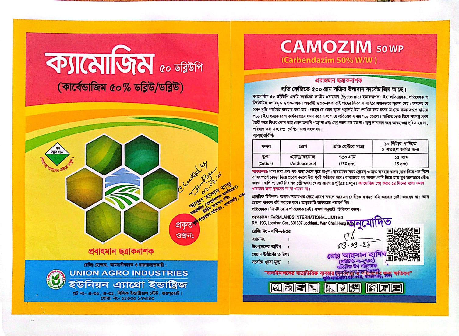 ক্যামোজিম ৫০ ডব্লিউপি একটি কার্বামেট জাতীয় প্রবাহমান (Systemic) ছত্রাকনাশক। ইহা প্রতিরোধক, প্রতিষেধক ও সিস্টেমিক গুন সমৃদ্ধি ছত্রাকনাশক। অন্তর্বাহী ছত্রাকনাশক তাই গাছের ভিতর ও বাহির সমানভাবে সুরক্ষা দেয়। ফসলের যে কোন বৃদ্ধি পর্যায়েই ব্যাবহার করা যায়। ইহা ছত্রাক রোগ কার্যকর ভাবে দমন করে এবং গাছে প্রতিরোধ ব্যাবস্থা গড়ে তোলে।