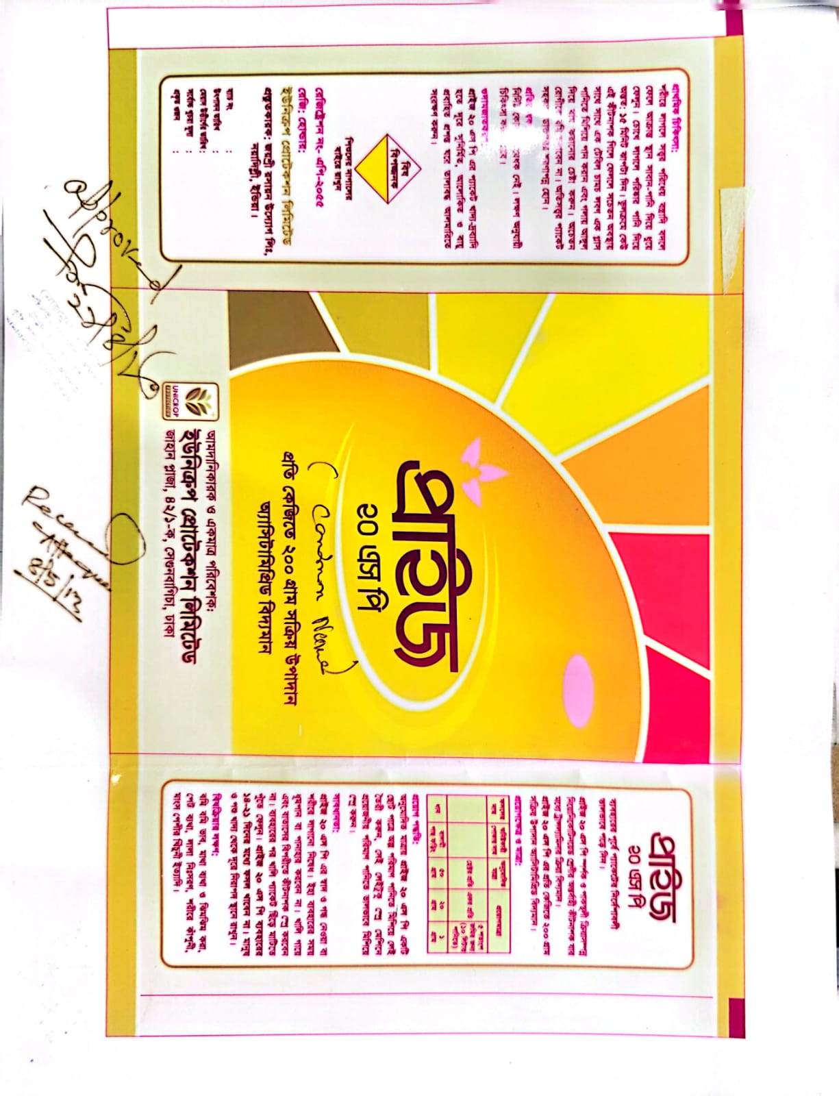 পন্যের লেবেল বা প্যাকেটে বিস্তারিত উল্লেখ আছে।