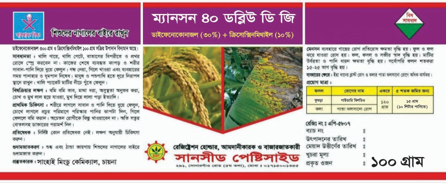 ১০ লিটার পানিতে ০৫ শতক জমির জন্য ম্যানসন-৪০ ডব্লিউ ডি জি ১৫ গ্রাম ভাল ভাবে মিশিয়ে স্প্রে করতে হবে।