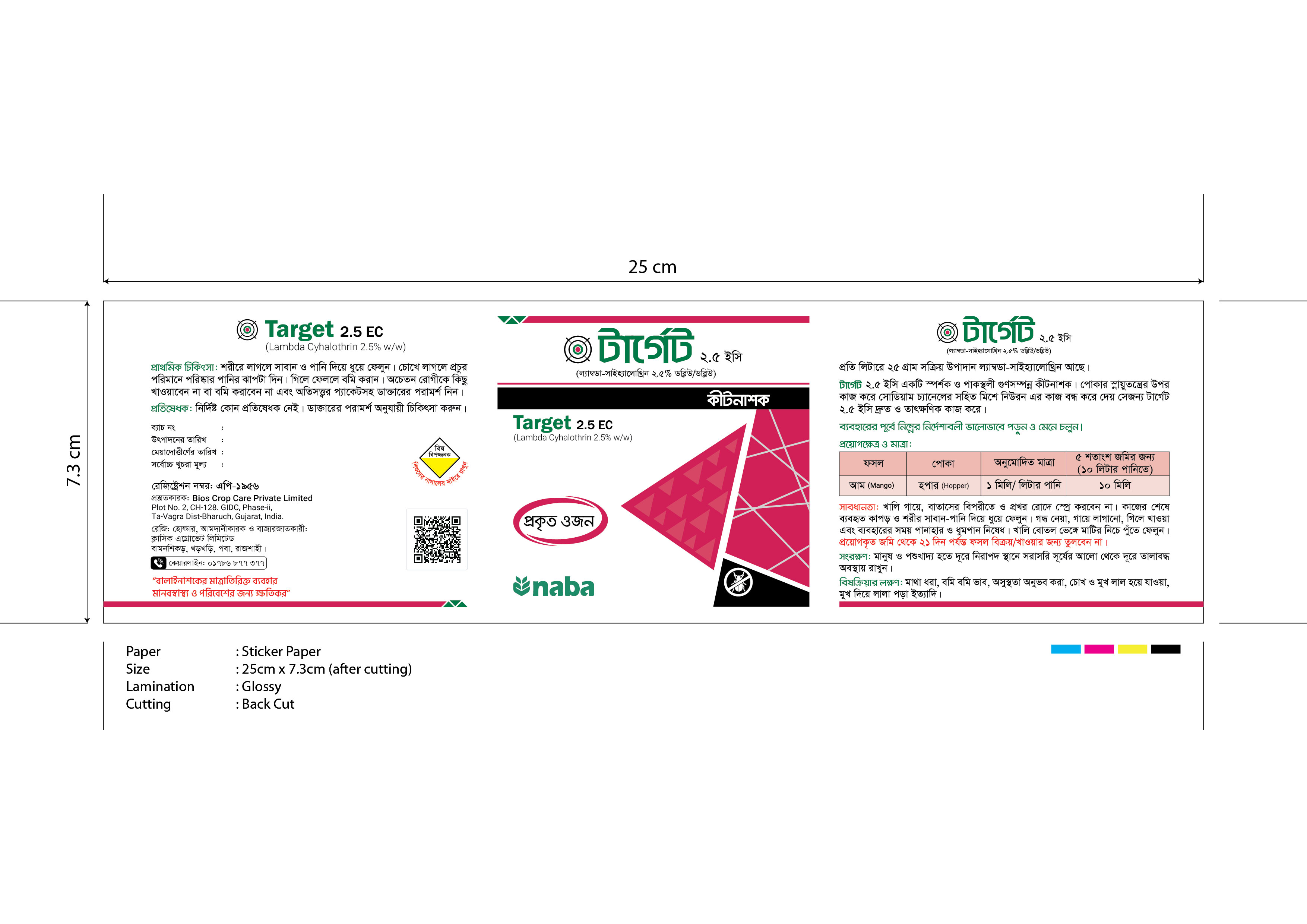 লেবেলে বর্ণিত ফসলের বালাই দমনে টার্গেট ২.৫ ইসি কার্যকরী ও অনুমোদিত।