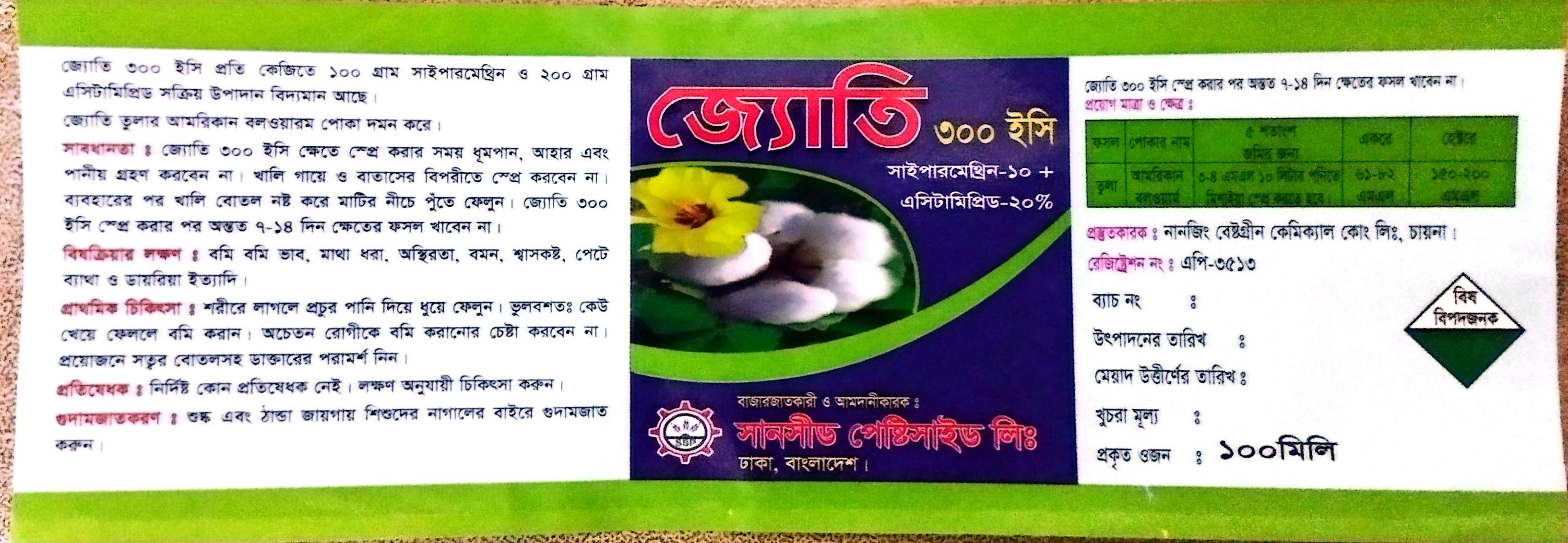 জ্যোতি ৩০ ইসি স্প্রে করার পর ান্তত ৭-১৪ দিন ক্ষেতের ফসল খাবেন না।
