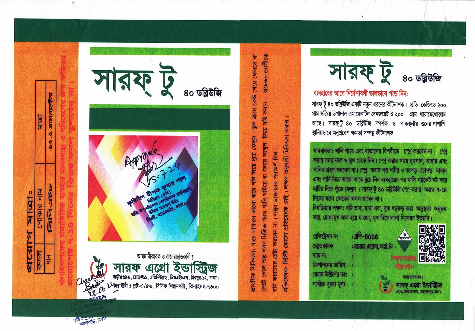 উদ্ভিদ সংরক্ষণ উইং, কৃষি সম্প্রসারণ অধিদপ্তর, খামারবাড়ি, ঢাকা কর্তৃক অনুমোদিত