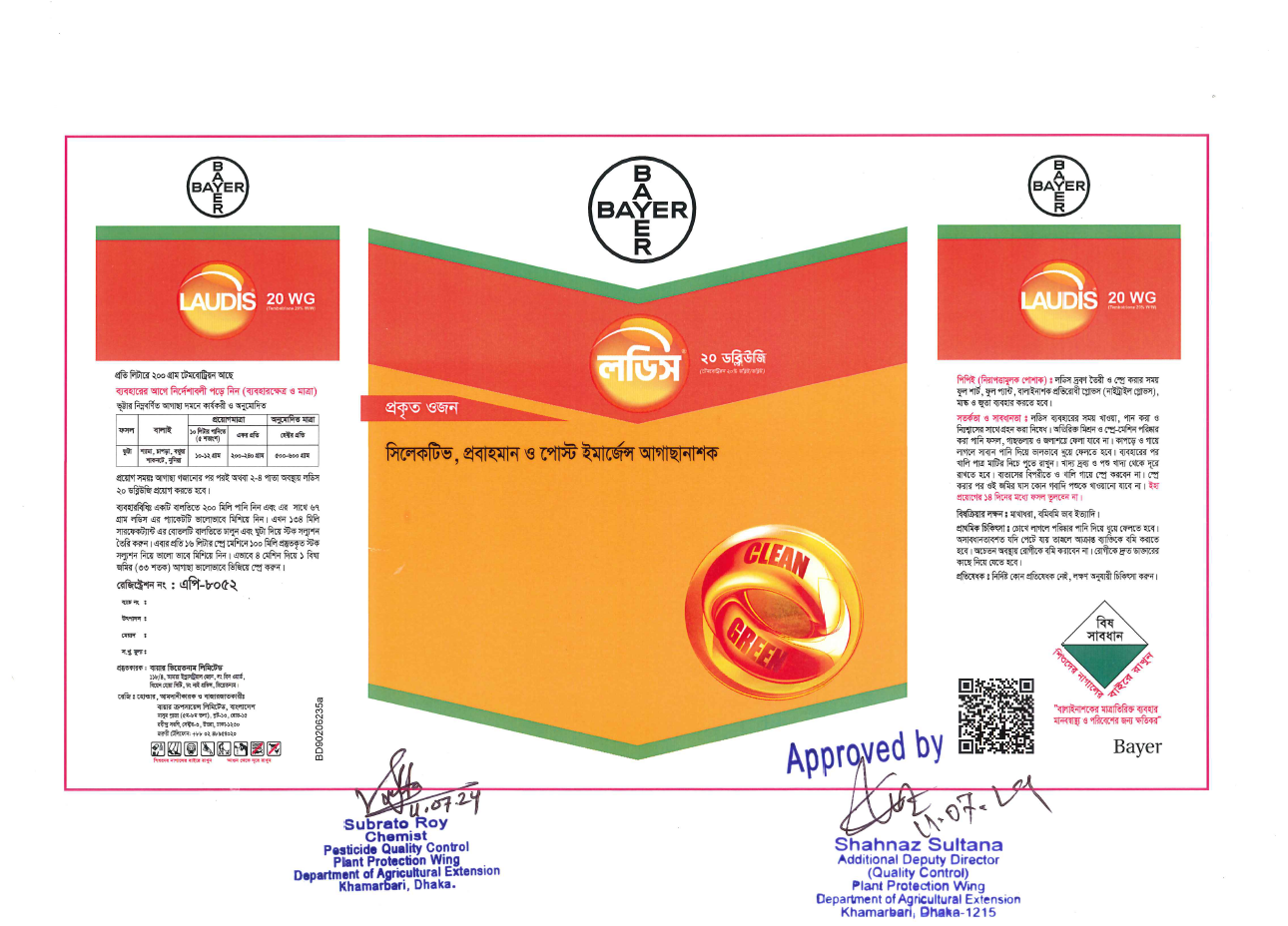 লডিস ২০ডব্লিউজি প্রয়োগের খাওয়া, পান করা ও নিঃশ্বাসের সাথে গ্রহন করা নিষেধ। অতিরিক্ত মিশ্রন ও স্প্রে-মেশিন পরিষ্কার করা পানি ফসল, গাছতলায় ও জলাশয়ে ফেলা যাবে না। কাপড় ও গায়ে লাগলে সাবান পানি দিয়ে ধুয়ে ফেলতে হবে। ব্যবহারের পর খালি পাত্র মাটির নিচে পুতে রাখুন। খাদ্যদ্রব্য ও পশু খাদ্য থেকে দূরে রাখতে হবে। বাতাসের বিপরীতে ও খালি গায়ে কীটনাশক স্প্রে করবেন না। স্প্রে করার পর ওই জমির ঘাস কোন গবাদি পশুকে খাওয়ানো যাবে না। ইহা প্রয়োগের ১৪ দিনের মধ্যে ফসল তুলবেন না।