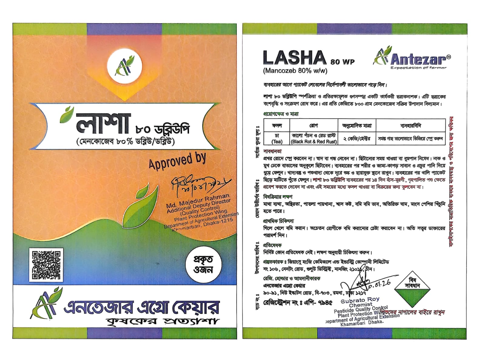 উদ্ভিদ সংরক্ষণ উইং, কৃষি সম্প্রসারণ অধিদপ্তর, খামারবাড়ি, ঢাকা কর্তৃক অনুমোদিত