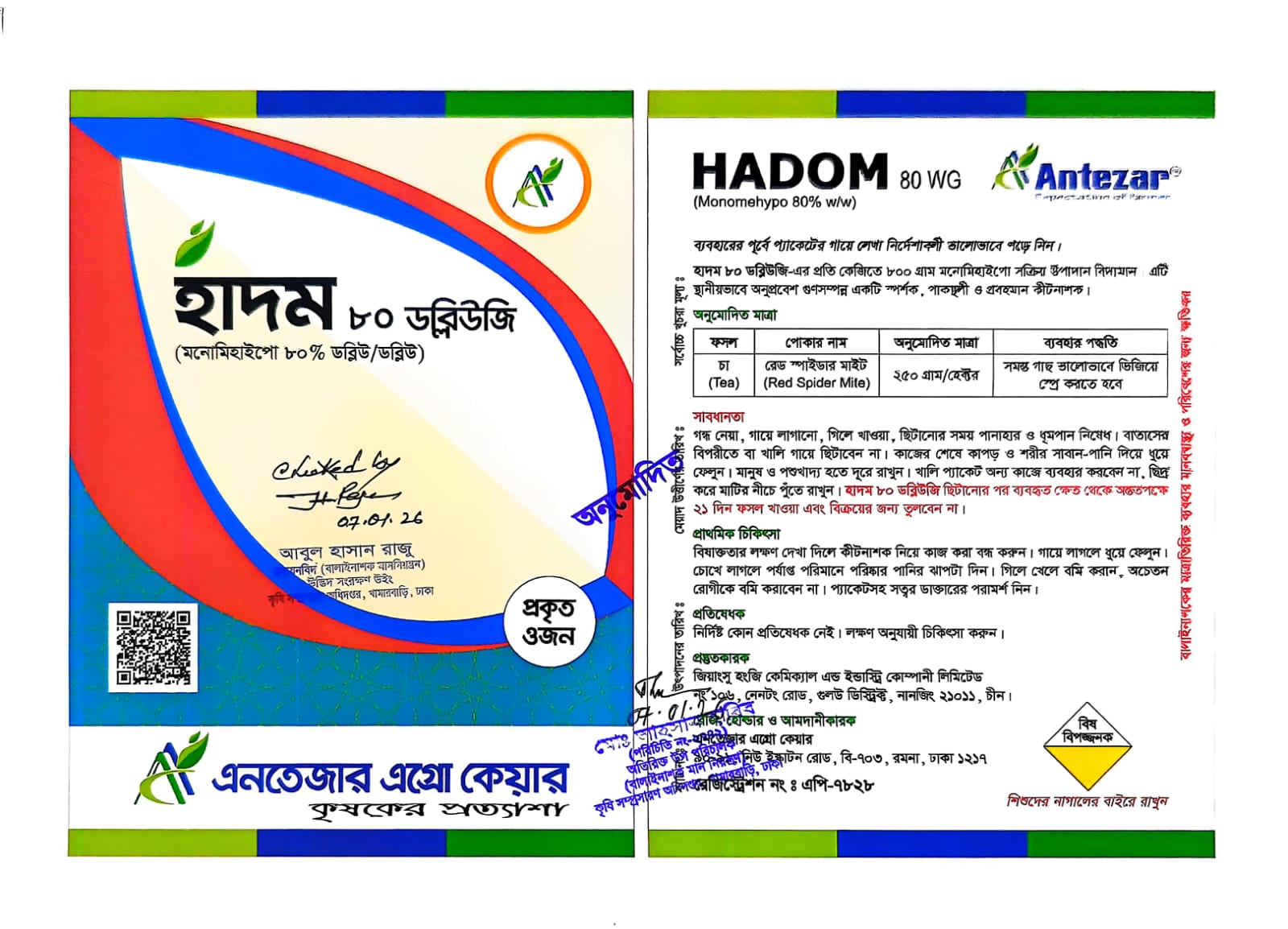 উদ্ভিদ সংরক্ষণ উইং, কৃষি সম্প্রসারণ অধিদপ্তর, খামারবাড়ি, ঢাকা কর্তৃক অনুমোদিত