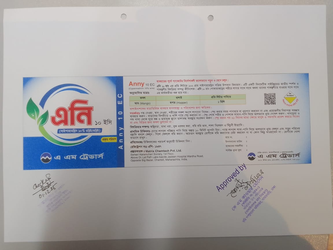 ইহা আমের হপার দমনে প্রতি লিটার পানিতে 1 মিলি হারে পানির সাথে ভালোভাবে মিশিয়ে স্প্রে করতে হবে।