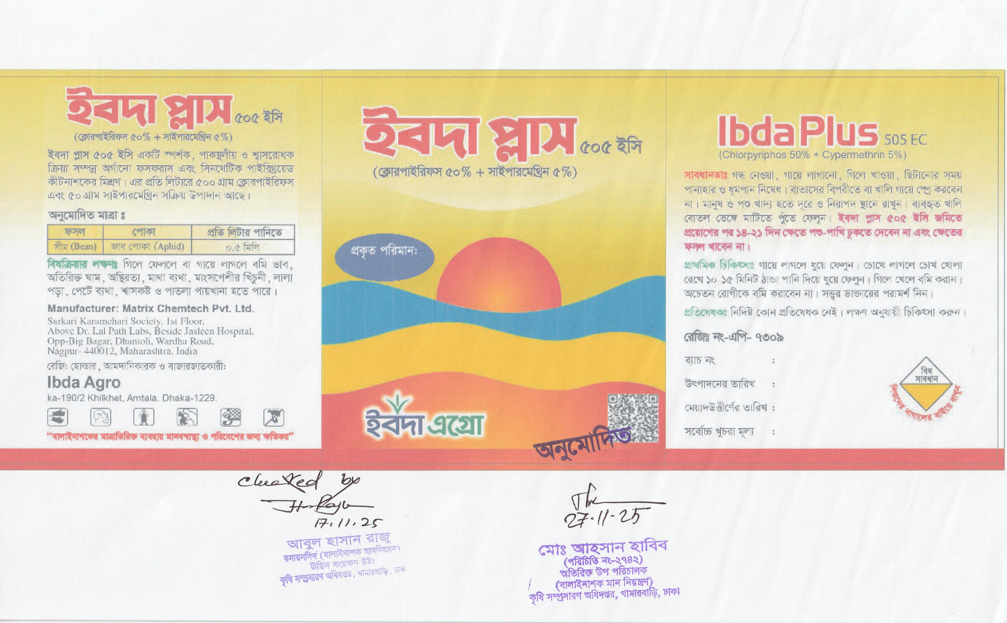 Ibda Plus 55EC (Chlorpyrifos 50% + Cypermethrin 5%) can be used in crop field of cotton, brinjal and potato etc.