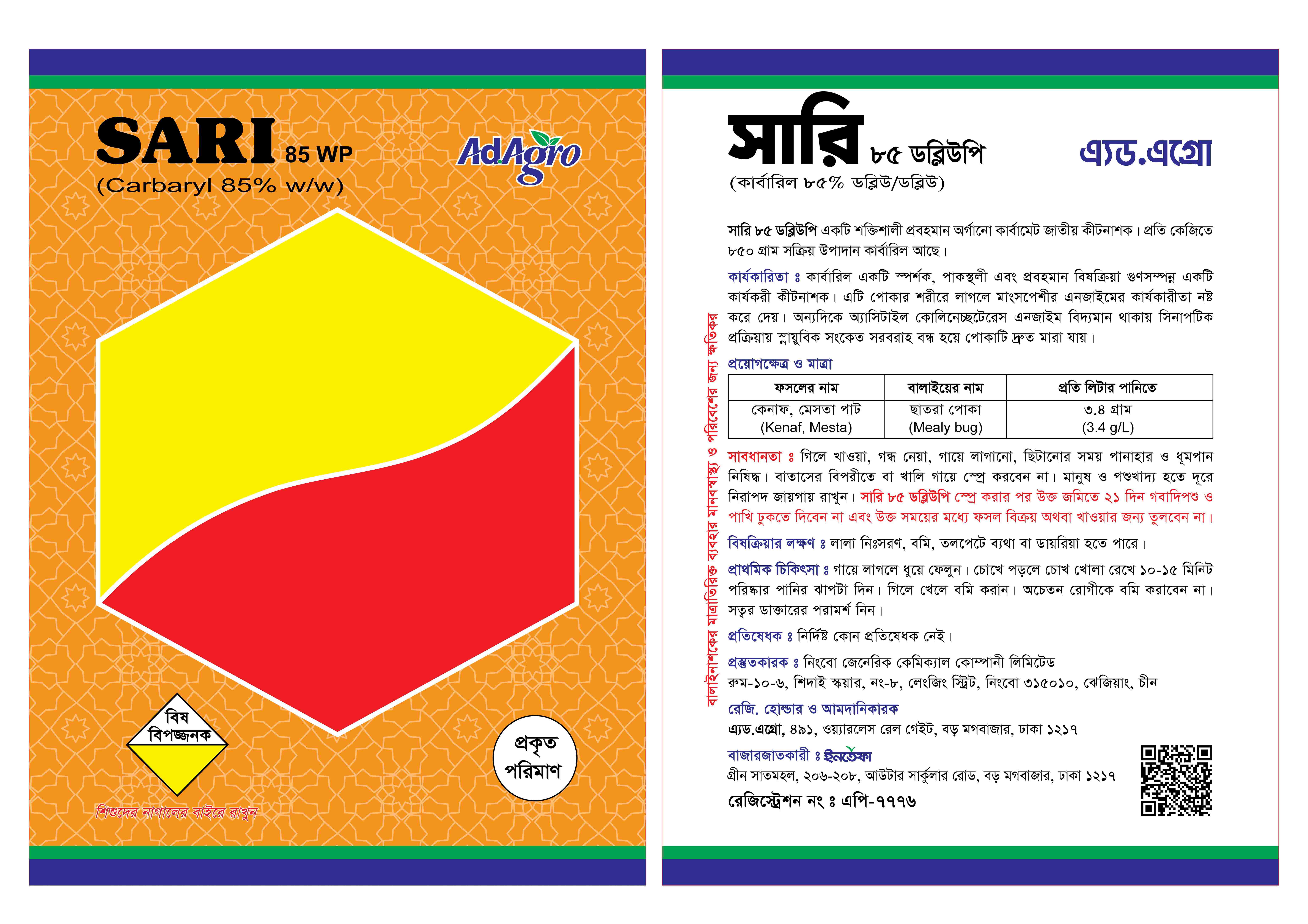 ব্যবহারের পর খালি প্যাকেট ছিদ্র করে মাটিতে পুঁতে ফেলুন। সারি ৮৫ ডব্লিউপি জমিতে প্রয়োগ করার ২১ দিনের মধ্যে ফসল সংগ্রহ বা খাওয়া নিষিদ্ধ।