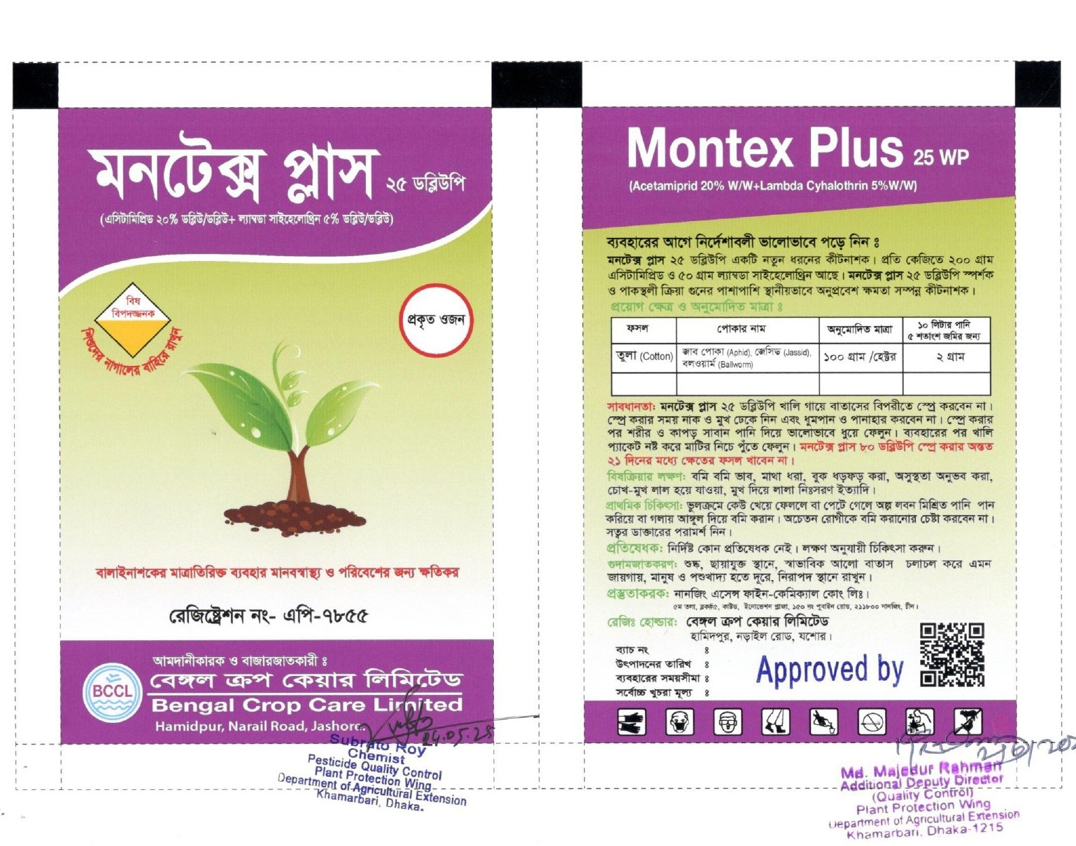 মনটেক্স প্লাস ২৫ডব্লিউপি স্পর্শক ও পাকস্থলী বিষক্রিয়া গুনসম্পন্ন দানাদার কীটনাশক।