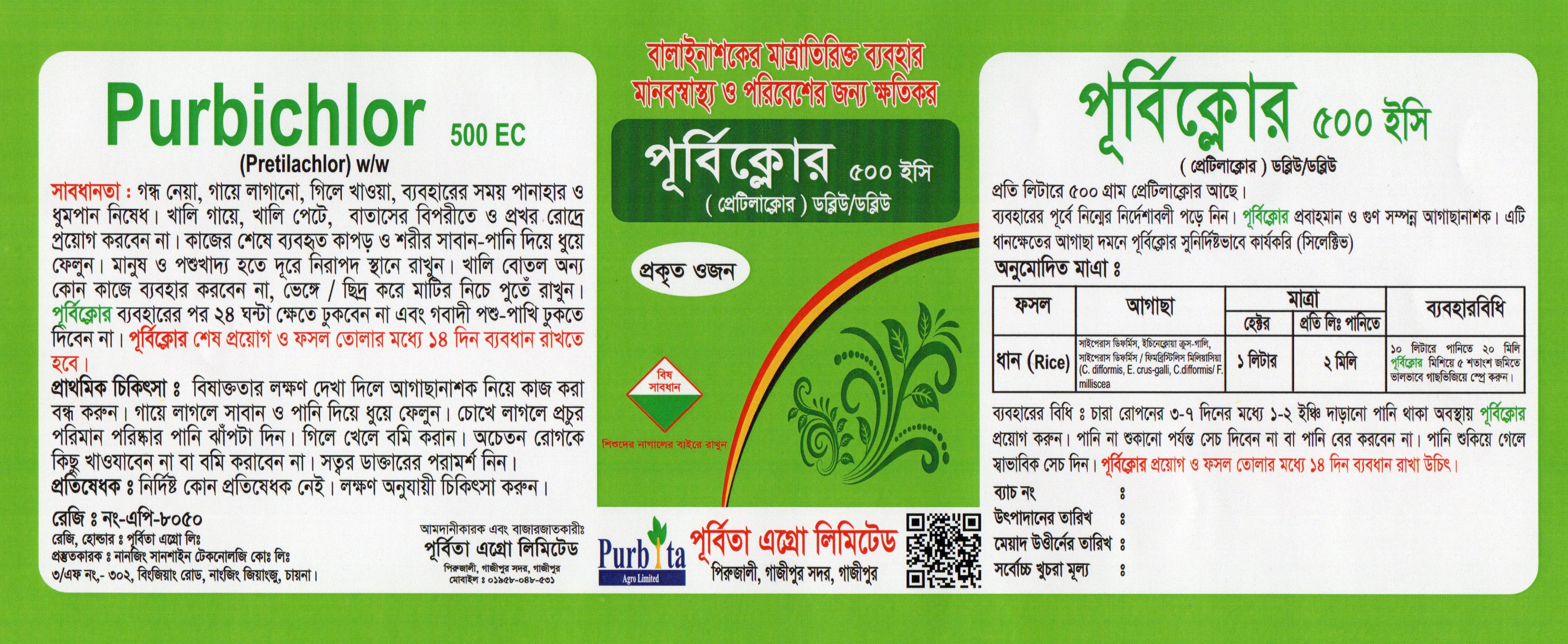পূর্বিক্লোর-৫০ ইসি প্রবাহমান ও গুণ সম্পন্ন আগাছানাশক। এটি ধান ক্ষেতের আগাছা দমনে সুনির্দিষ্টভাবে কার্যকরী।