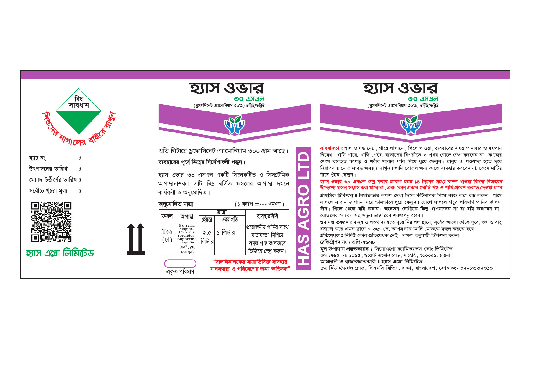 হ্যাস ওভার ৩০ এস এল একটি সিলেকটিভ ও সিস্টেমিটিক আগাছানাশক।