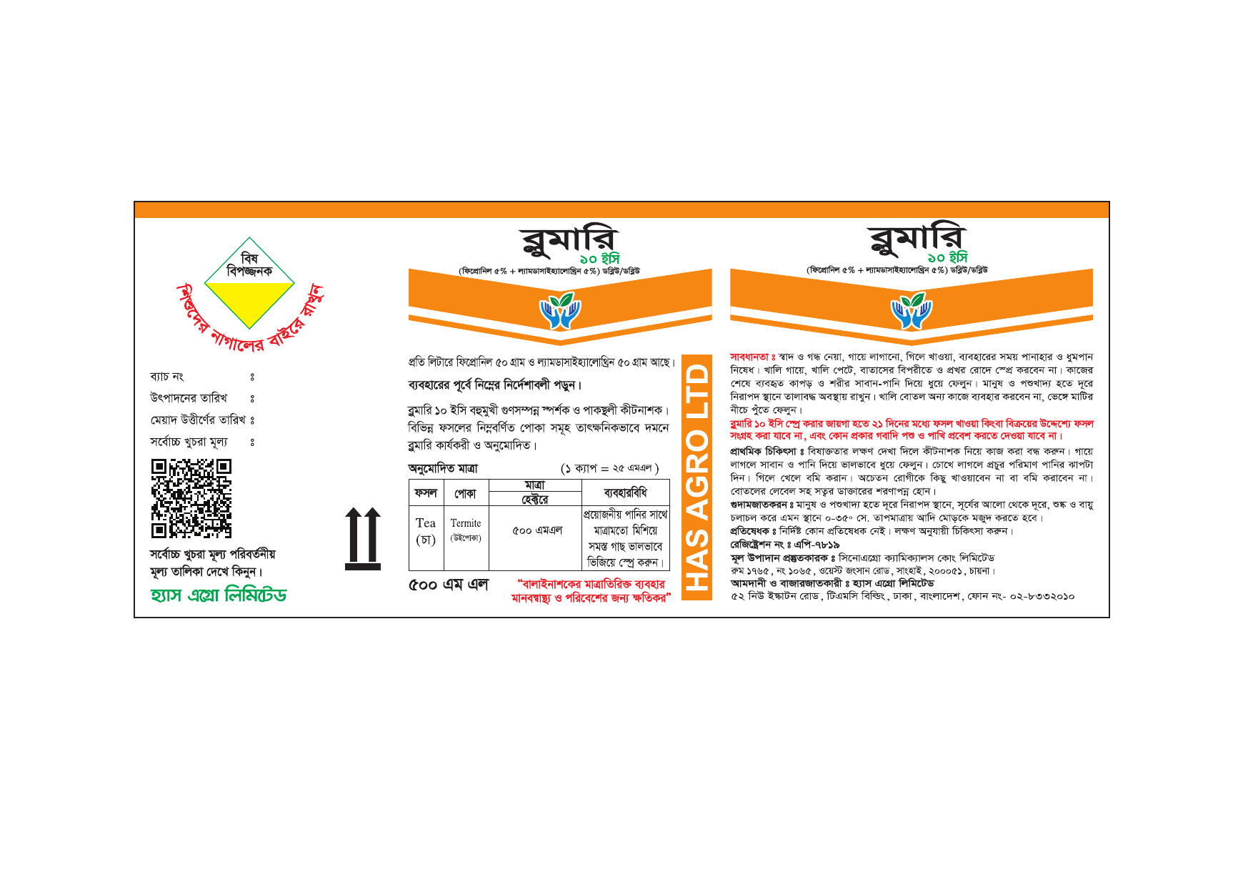 ব্লুমারি ১০ ইসি বহুগুনসম্পন্ন স্পর্শক ও পাকস্থলী কীটনাশক। বিভিন্ন ফসলের পোকা দমনে তাৎক্ষণিকভাবে কার্যকরী এবং অনুমোদিত।