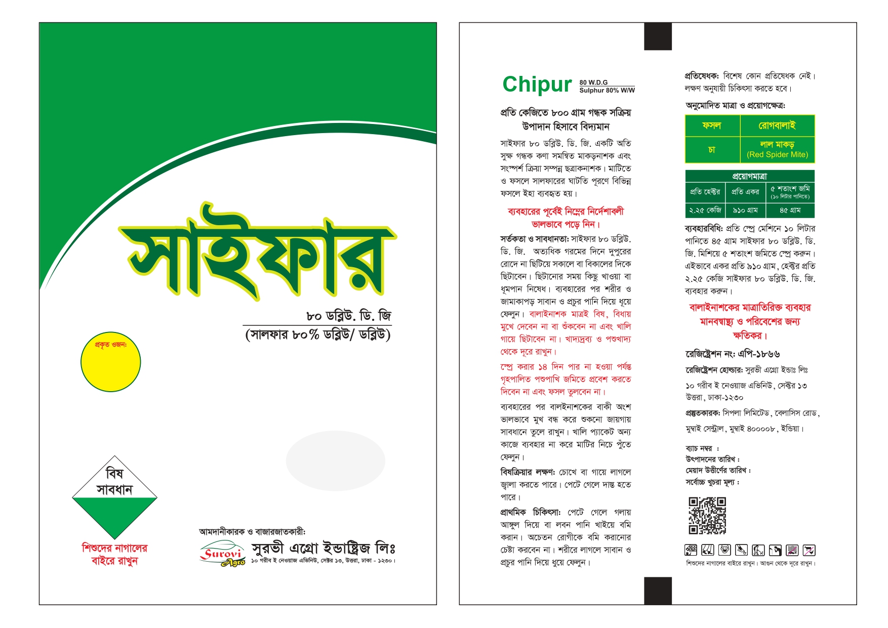 সাইফার ৮০ ডব্লিউ.ডি.জি একটি অতি সুক্ষ গন্ধক কণা সমন্বিত এবং সংস্পর্শ ক্রিয়া সম্পন্ন মাকড়নাশক।
